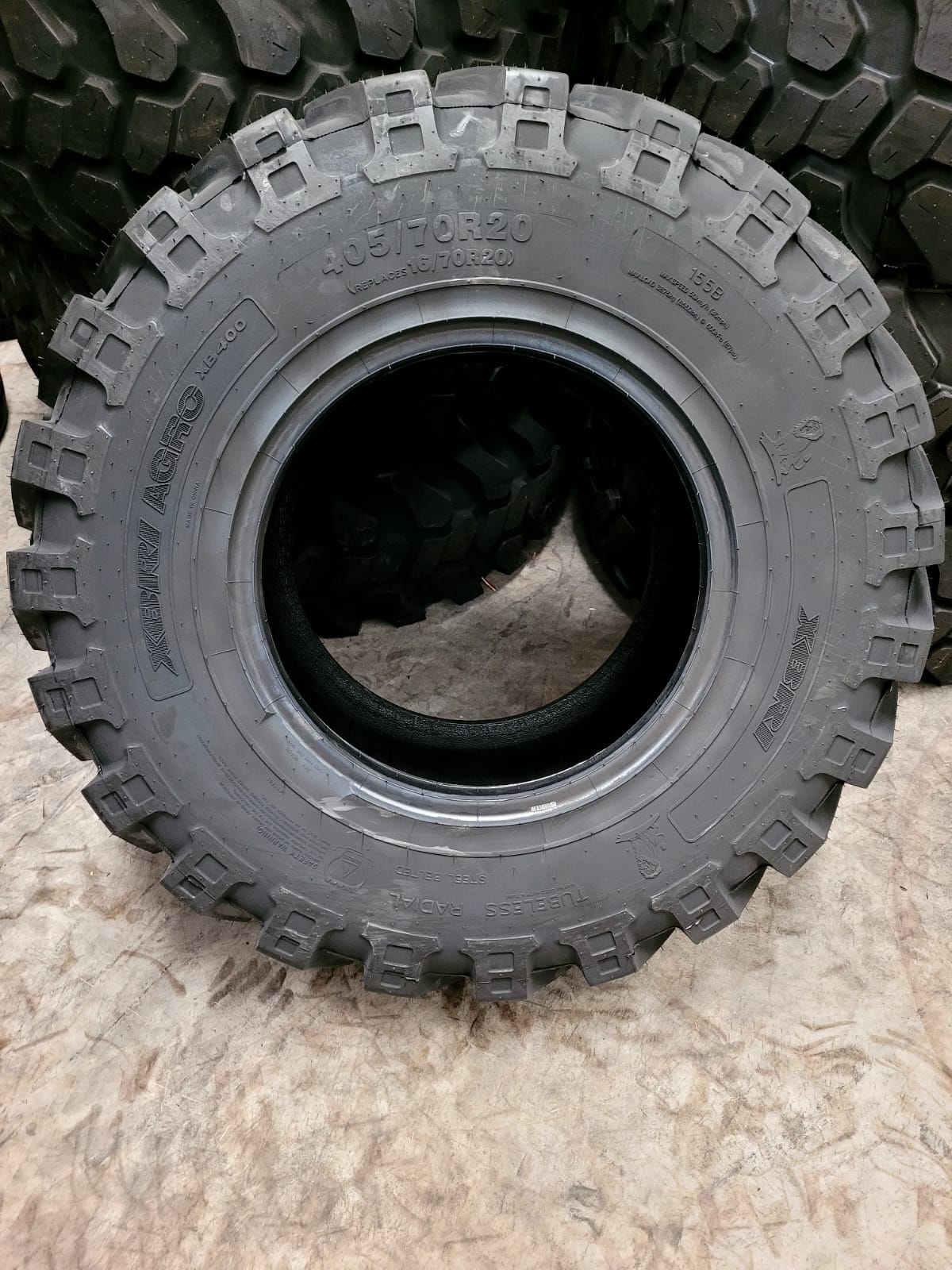 Pneu radial industrial Xbri XB400 405/70R20, desenvolvido para retroescavadeiras e manipuladores telescópicos, oferecendo alta tração, durabilidade superior e resistência em terrenos severos.
